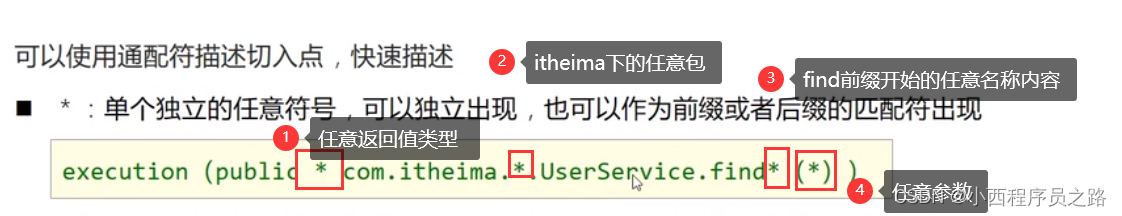注:一个*任意参数表示有一个任意参数。如果接口或者类中方法没有参数则不会实现成功。