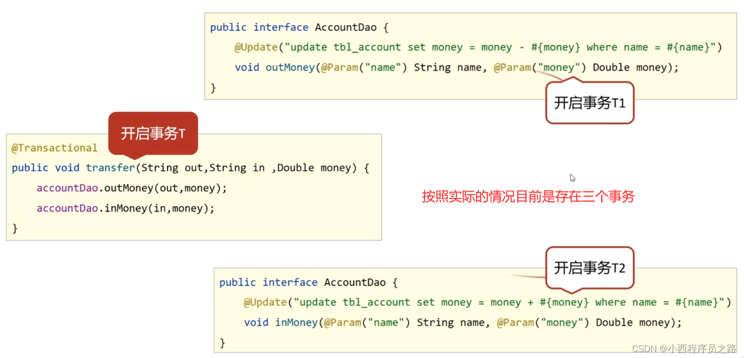 注:相同的数据源,把这些联系到了一起。以上事务角色也是实现同成功同失败的原因。