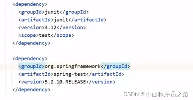 如果想要测试一下junit,在test下进行测试的话,则需要在poml.xml中进行相关的依赖增加。 如下所示。