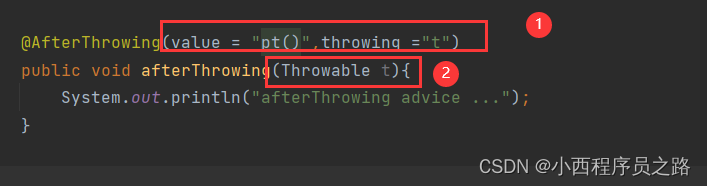3、@AfterThrowing通知来接收异常的对象。