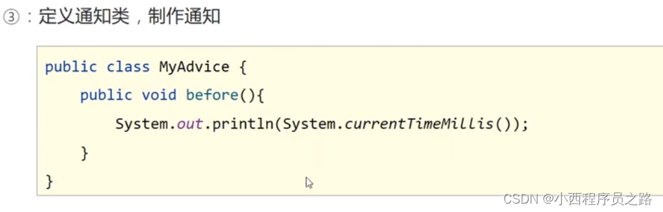 通知类:是自己增加的方法所依赖的地方,即类。方法是在类中进行产生的。产生这种方法的类就叫做通知类。
