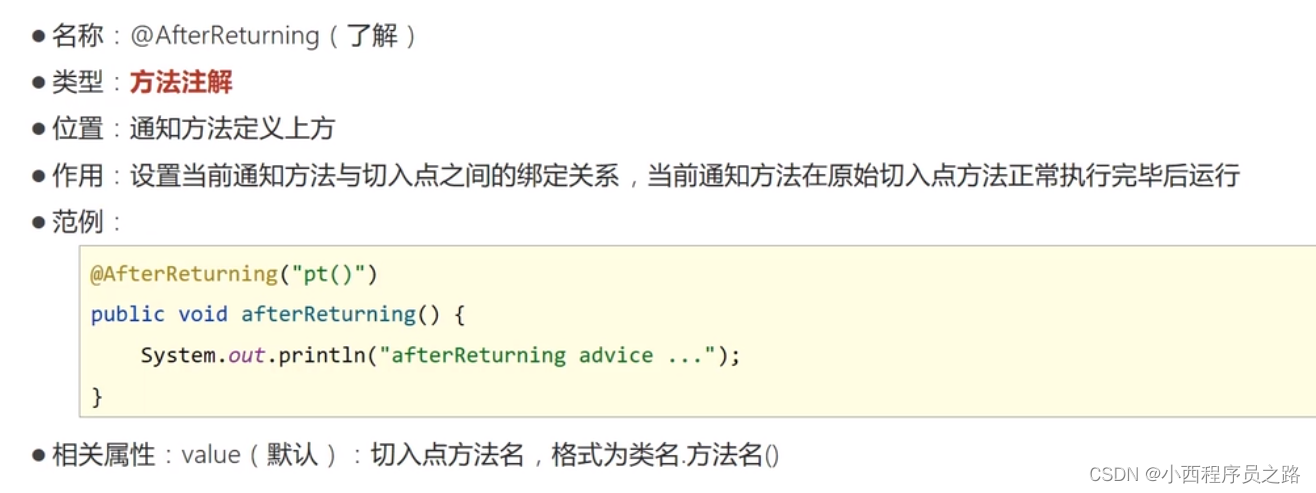 4、@AfterReturning("pt2()"):出现异常该注解不执行。