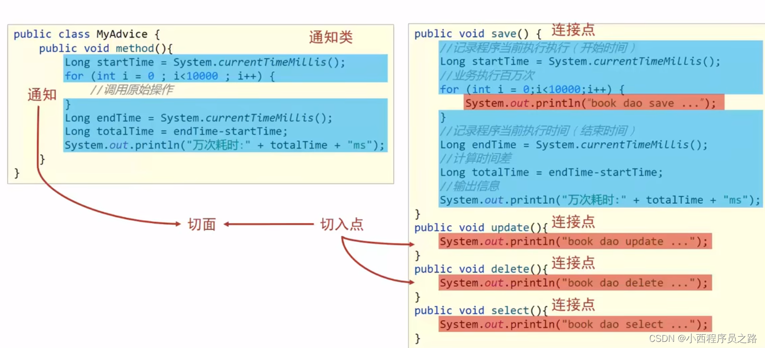 1、AOP是面向切面的编程,实际上就是这个上图中的切面。