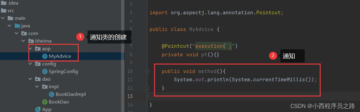 步骤三:创建aop下的类,即制作通知类和通知(增加功能)。