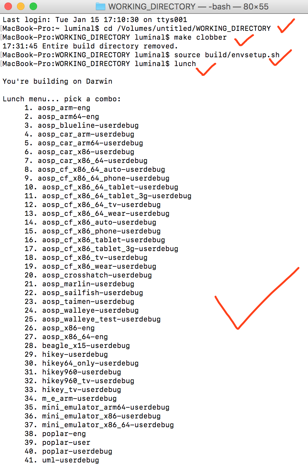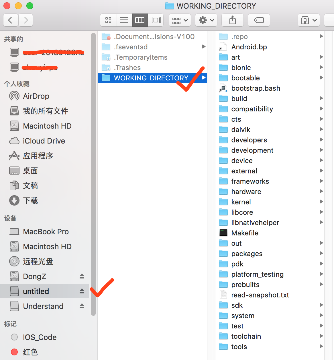 切换到源码目录:cd /Volumes/untitled/WORKING_DIRECTORY