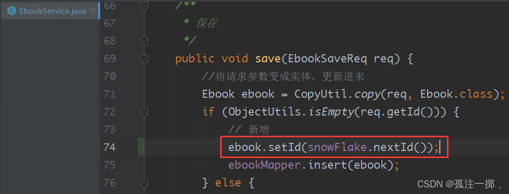 nextId()方法:首先会取一个时间戳,即跟2021年之差的时间戳。同一毫秒内,最多可以生成2的12次方个id...最后将 时间戳部分、数据中心部分、机器标识部分和序列号拼接起来,整个数字变为雪花id,长整型。