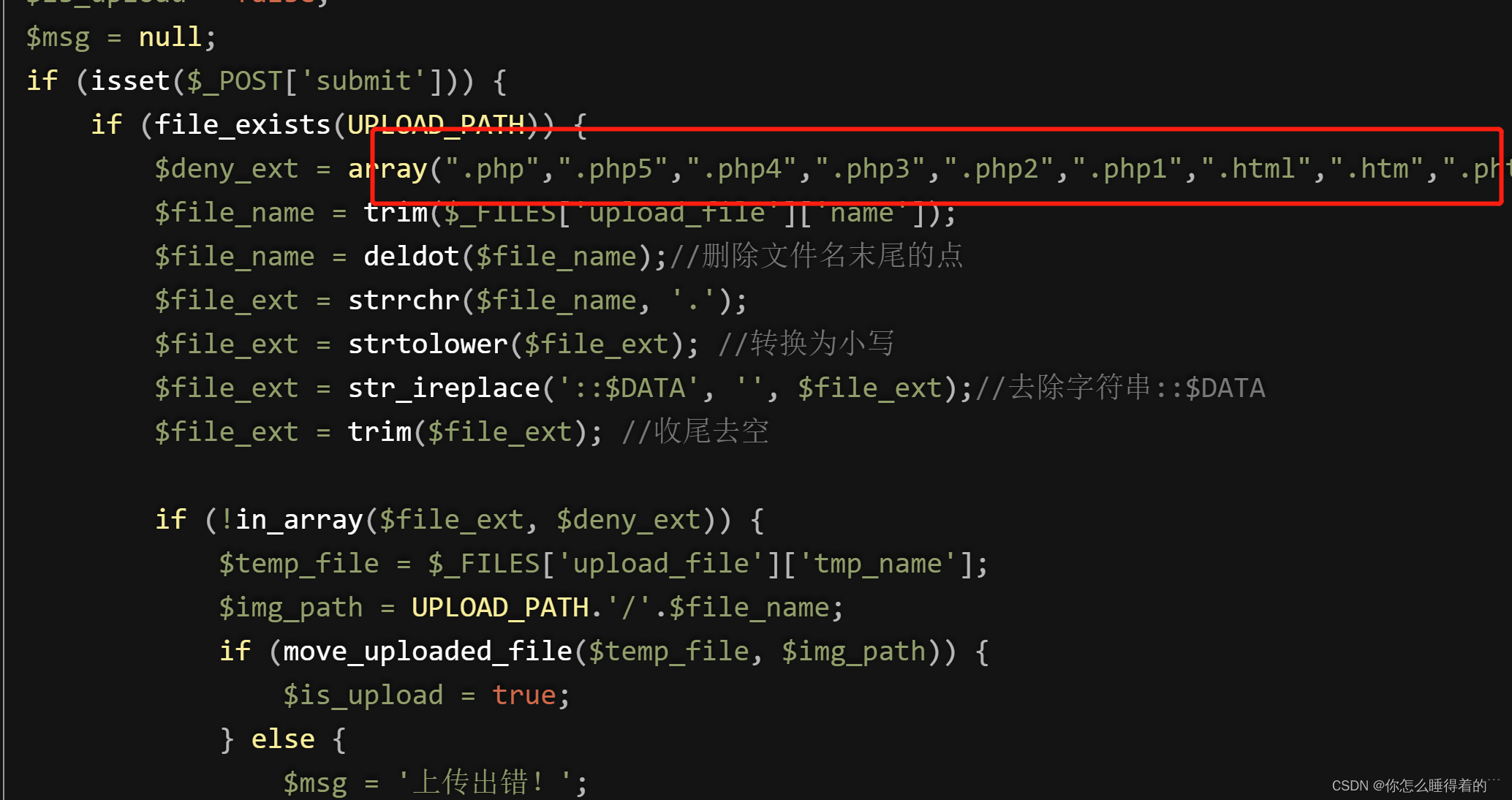 $deny_ext = array("php","php5","php4","php3","php2","html","htm","phtml","pht","jsp","jspa","jspx","jsw","jsv","jspf","jtml","asp","aspx","asa","asax","ascx","ashx","asmx","cer","swf","htaccess");