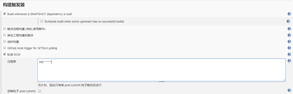 配置5分钟检查一次,当git发生变化时,会自动启动构建