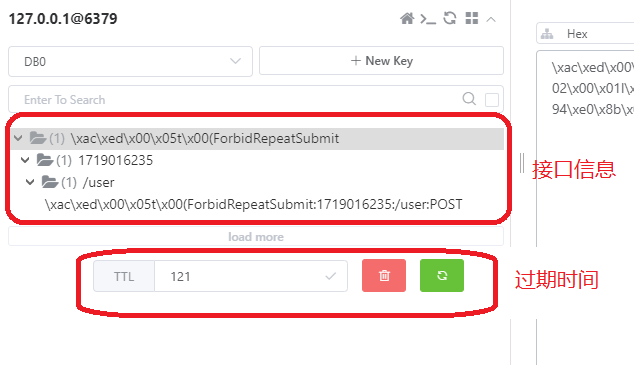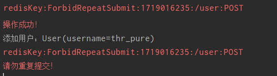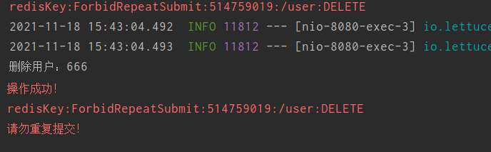 2、用户在过期时间内再次访问接口时,redis中存储有接口信息,不执行方法,即用户重复提交。