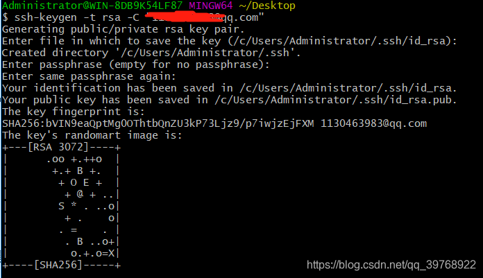 在终端输入:$ ssh-keygen -t rsa -C "123456789@qq.com"