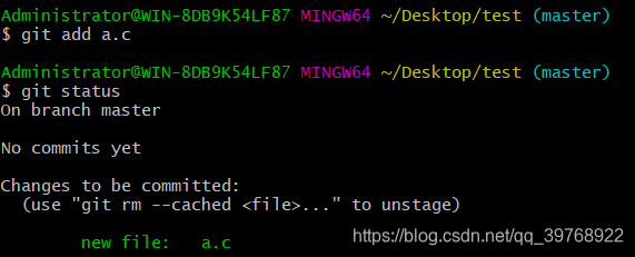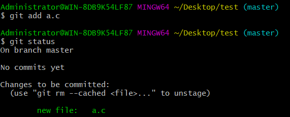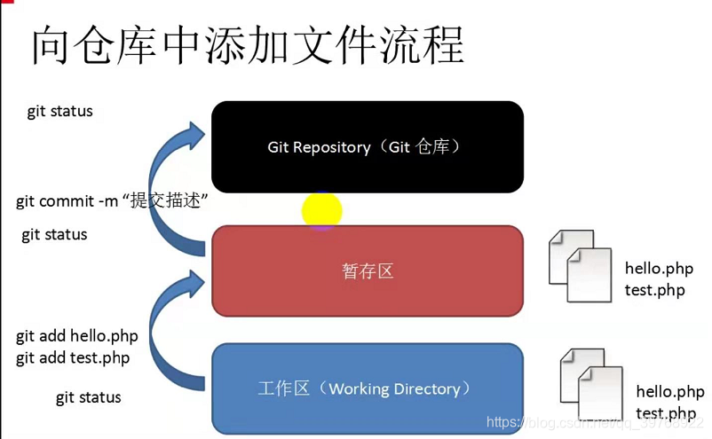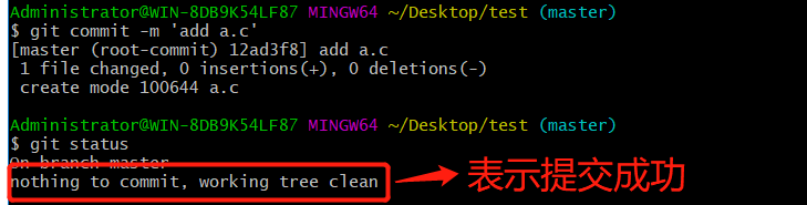 git commit -m "第一次通过git提交到仓库" //添加说明,并将文件从暂存区添加到仓库
