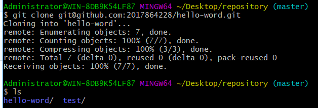 用ls查看,发现本地仓库多了一个hello-world仓库,即为克隆成功。