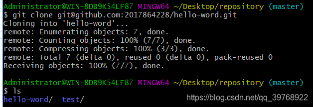 Git克隆操作:目的是将远程仓库(github对应的项目)复制到本地。