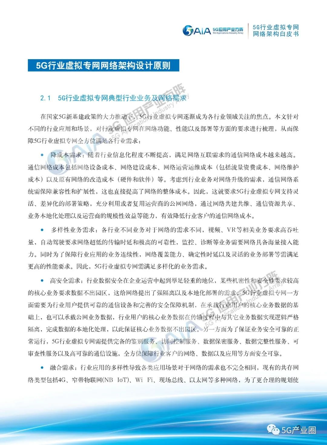 白皮书聚焦5G网络在行业领域落地时面临的问题,针对行业不同应用和场景特点,梳理了行业降成本、多样性业务、高安全、自运维和系统融合发展五大特色需求,并根据行业需求提出了5G行业虚拟专网的定义及不同场景的网络部署方案。