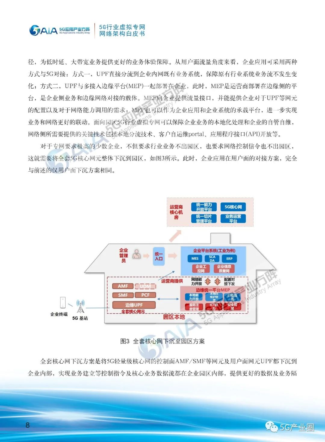 近日,在“2020中国互联网大会——5G生态论坛”上,5G应用产业方阵(5G AIA)行业应用组组长杜加懂代表5G产业应用方阵发布了《5G行业虚拟专网网络架构白皮书》。