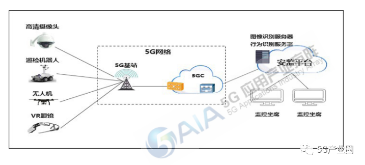 3)5G+机器视觉:在智能安监平台上部署图像识别和行为识别服务,通过数据训练后,生成人工智能模型。企业 内的高清摄像头、无人机摄像头、巡检机器人及AR眼镜等采集的视频传送到安监平台后,根据模型识 别出危险行为后通知安监人员。