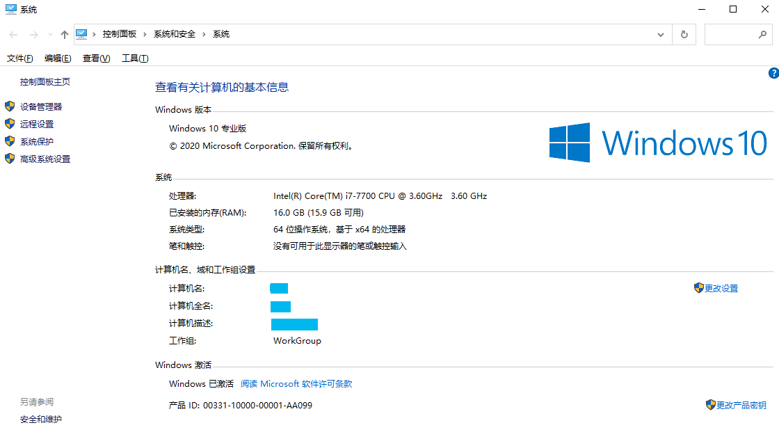右击<此电脑>,选择属性,进入一下界面