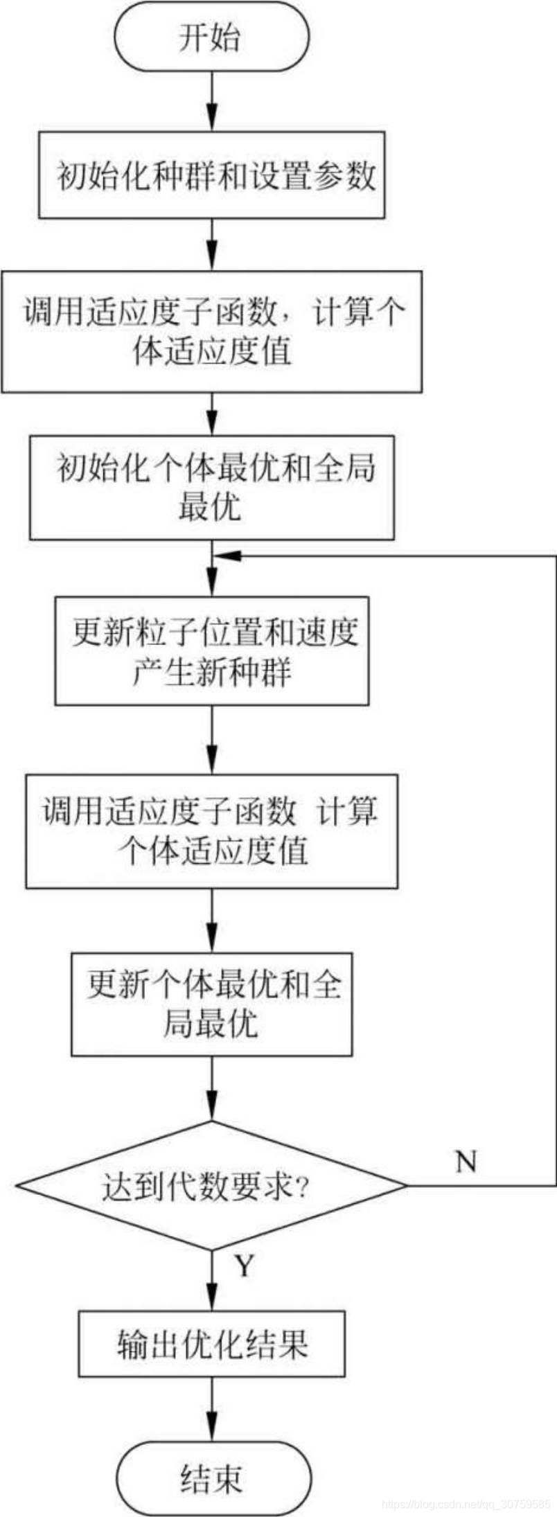 根据公式更新每个粒子的速度与位置。如未满足结束条件,则返回步骤2。通常算法达到最大迭代次数 或者最佳适应度值的增量小于某个给定的阈值时算法停止。