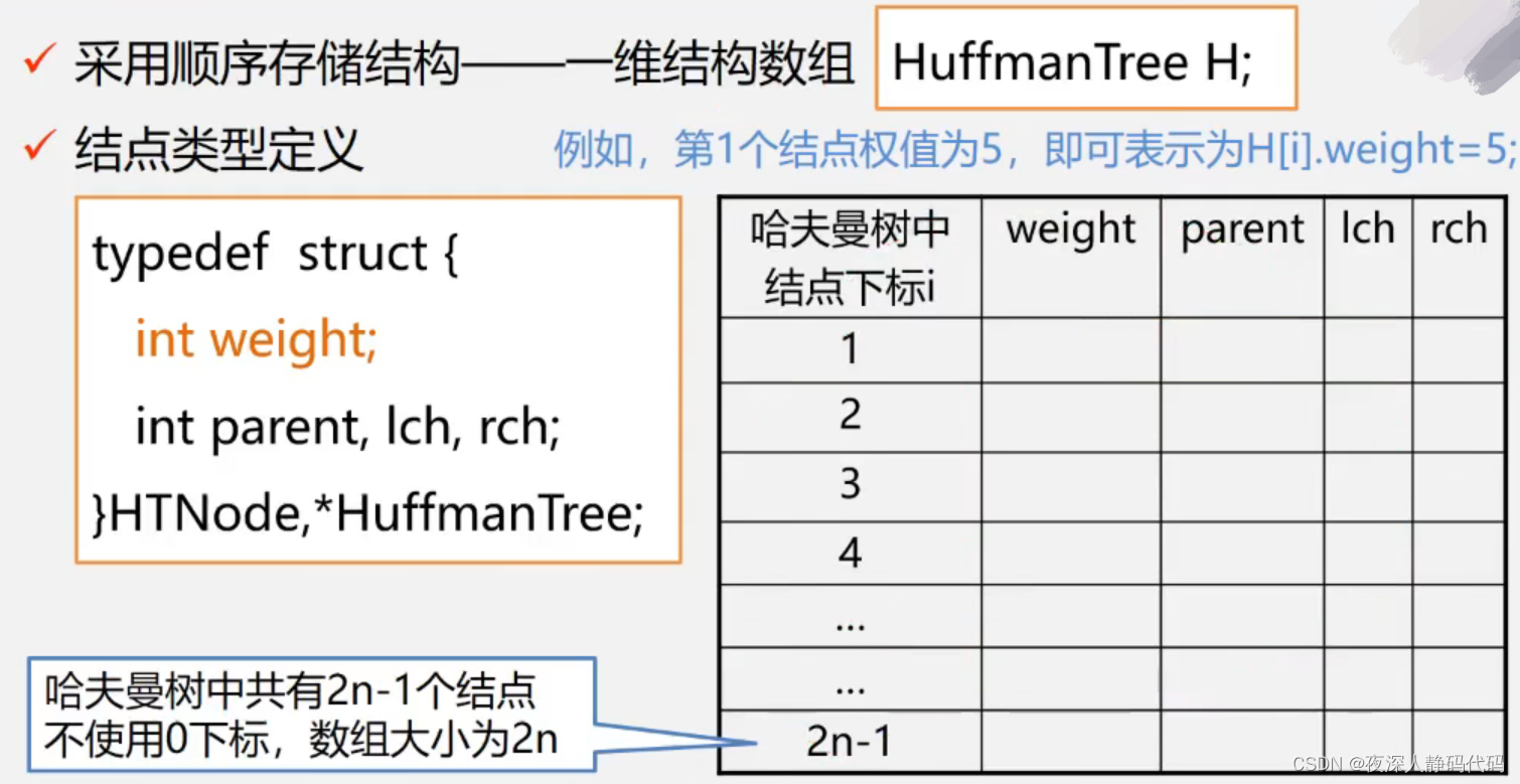 ②包含n个叶子结点的哈夫曼树中共有2n- 1个结点。