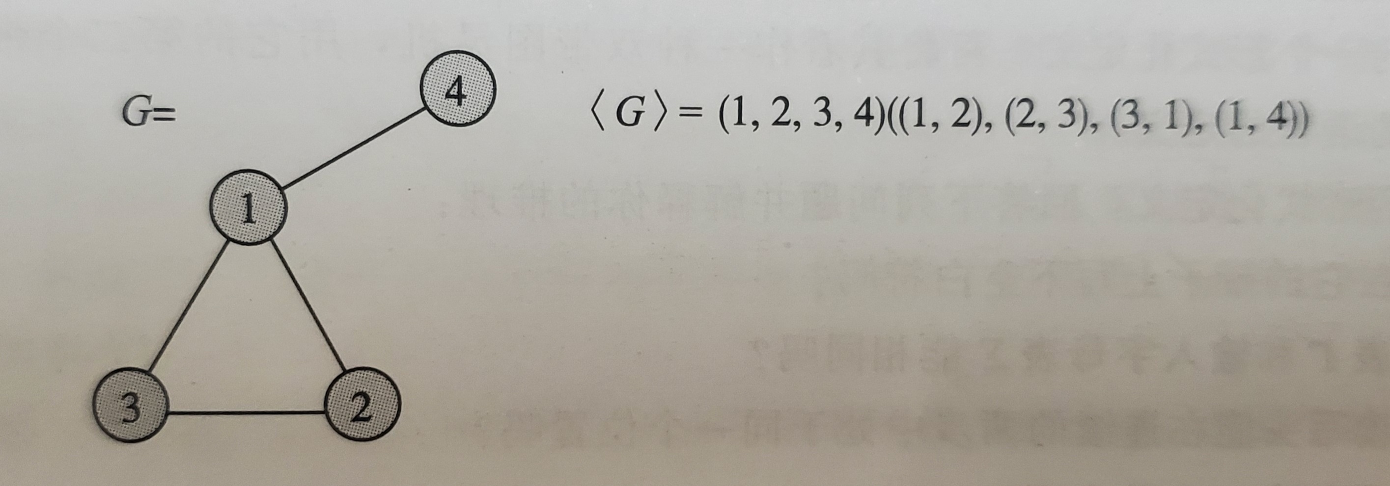 1:编码如右图,顶点集合与边 2:合法性检查:顶点序列不可重复,边序列不能包含不在顶点序列中的新节点。 3:步骤:①最左边顶点加个点②在一个已加点画个线做标记,再选任意一个未加点的的画个线,去边序列中寻找是否有两条线的边序列,有就将未加点的加个点③最后检查是否都加了点。