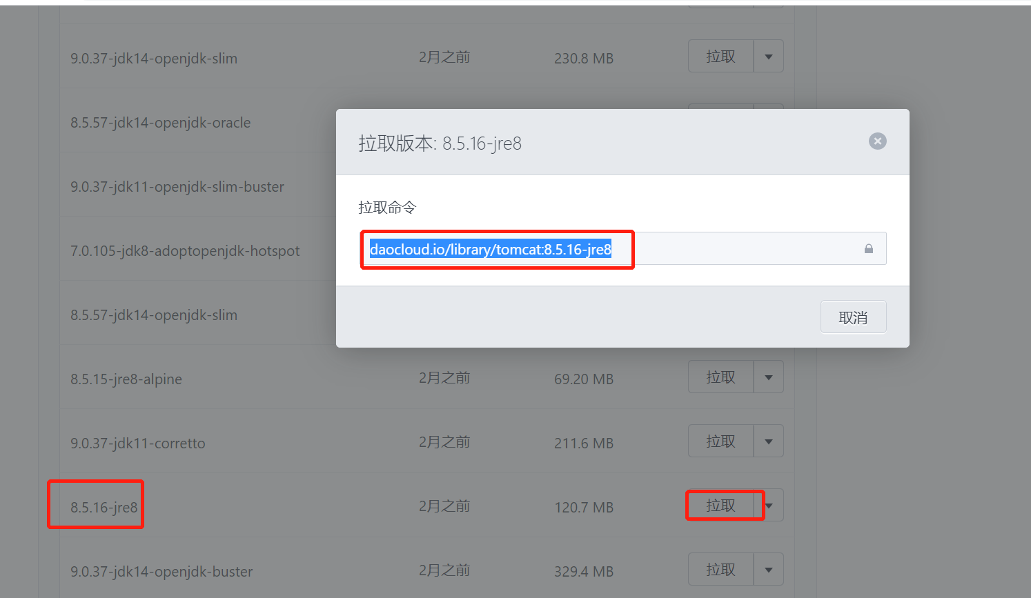 [root@node001 yum.repos.d]# docker pull daocloud.io/library/tomcat:8.5.16-jre8