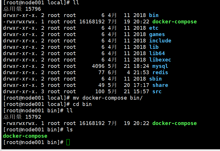 6.1.4 为了方便操作,将docker-compose文件放到bin目录下,