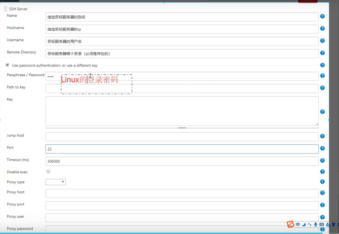 选择安装gitlib的服务器作为目标服务器:点选高级 和勾选使用密码