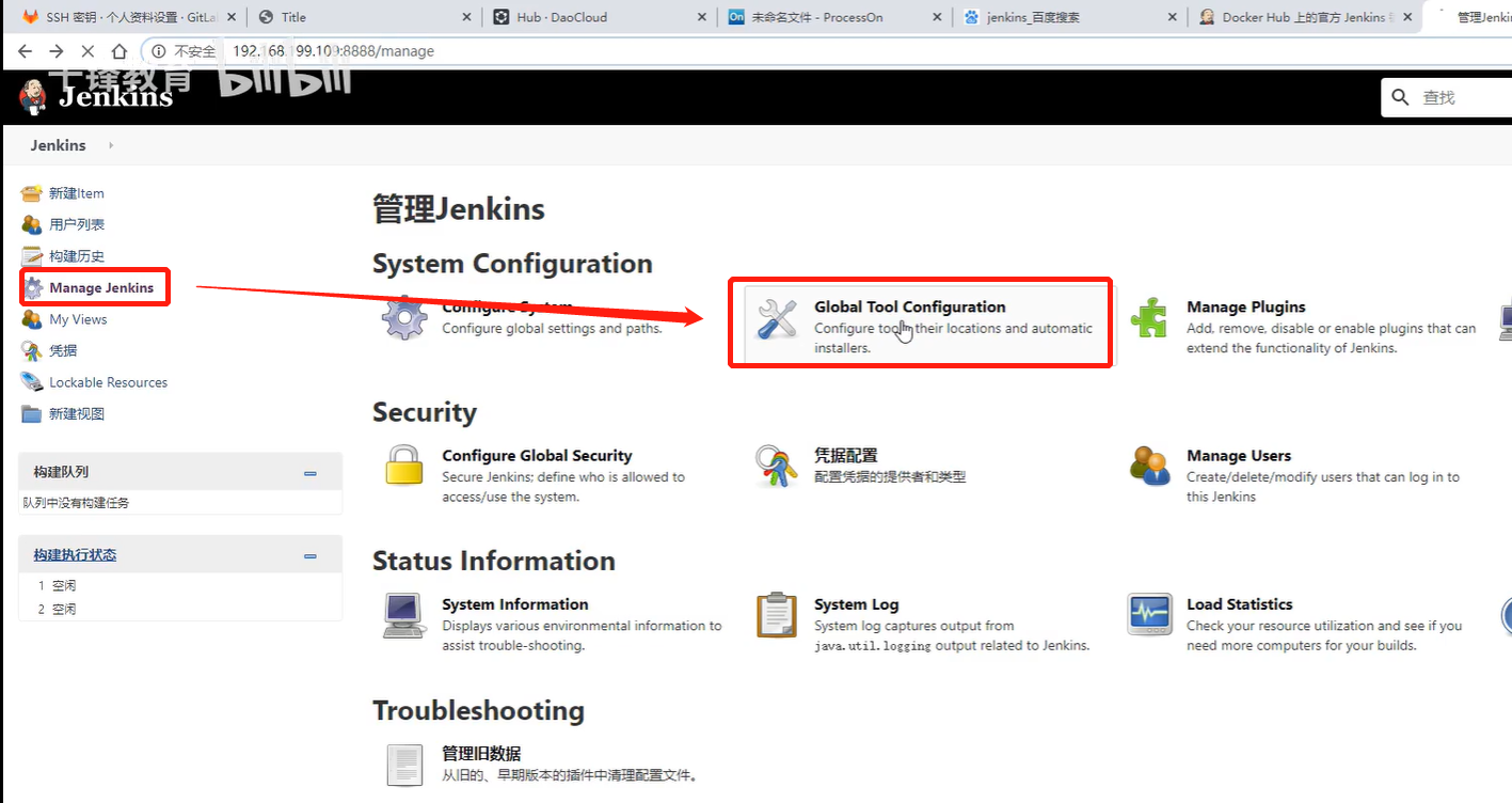jenkin会向gitlib上拉去下拉代码,在jenkin上执行一个maven的package打包,然后在扔到目标服务器。所以说jenkins需要JDK和maven的环境。