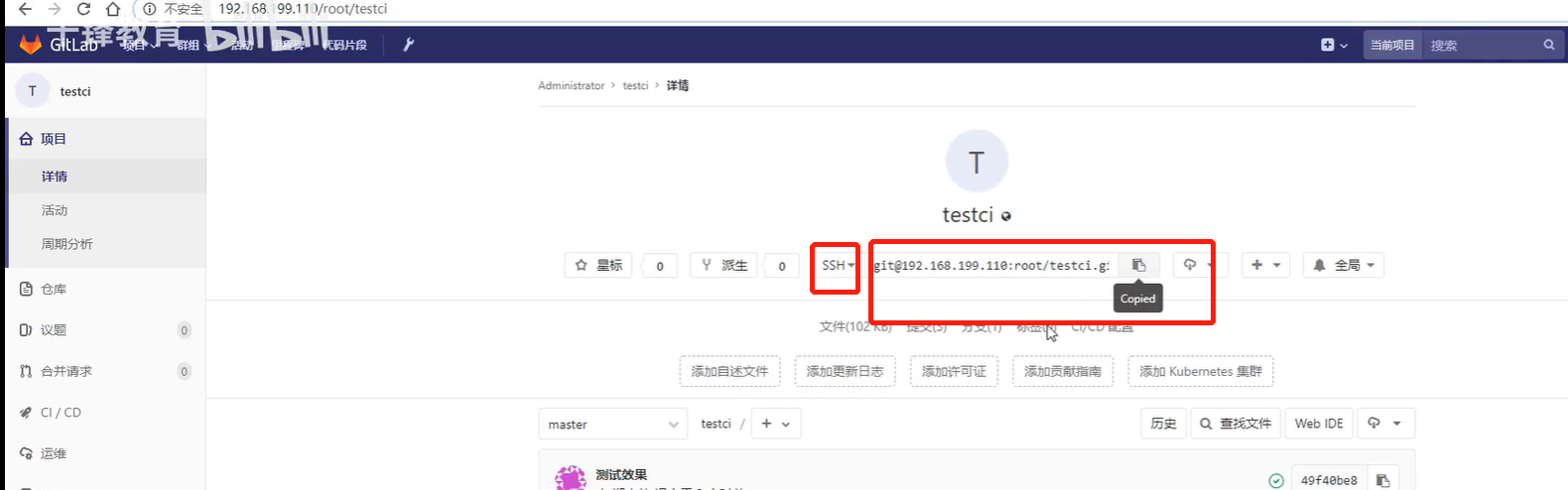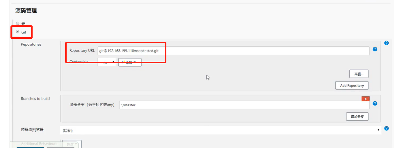 2.4 源码管理选用Git 方式 拿到Gitlib项目的ssh路径放到下面