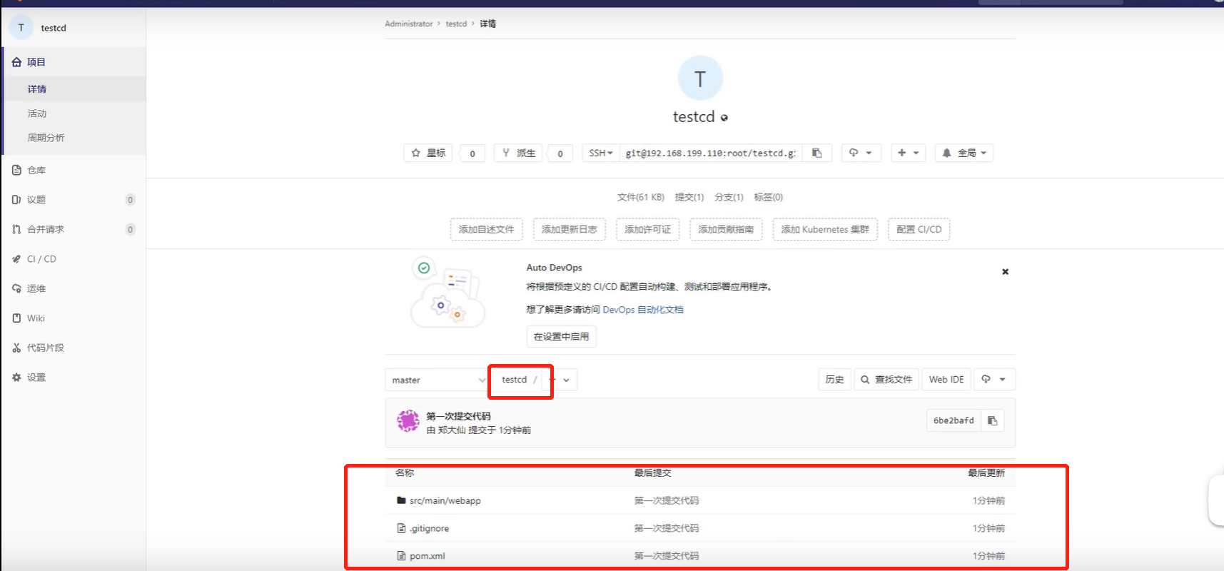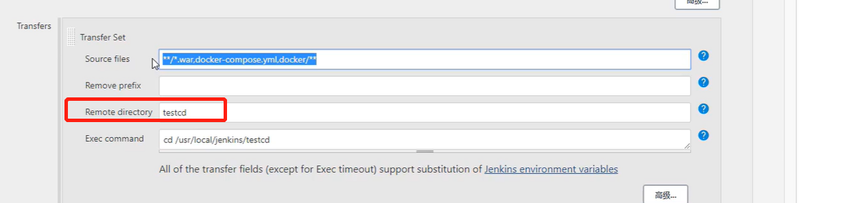 之前我们指定里一个路径是jenkins 这个路径用户拼接后面指定的路径(testcd)。