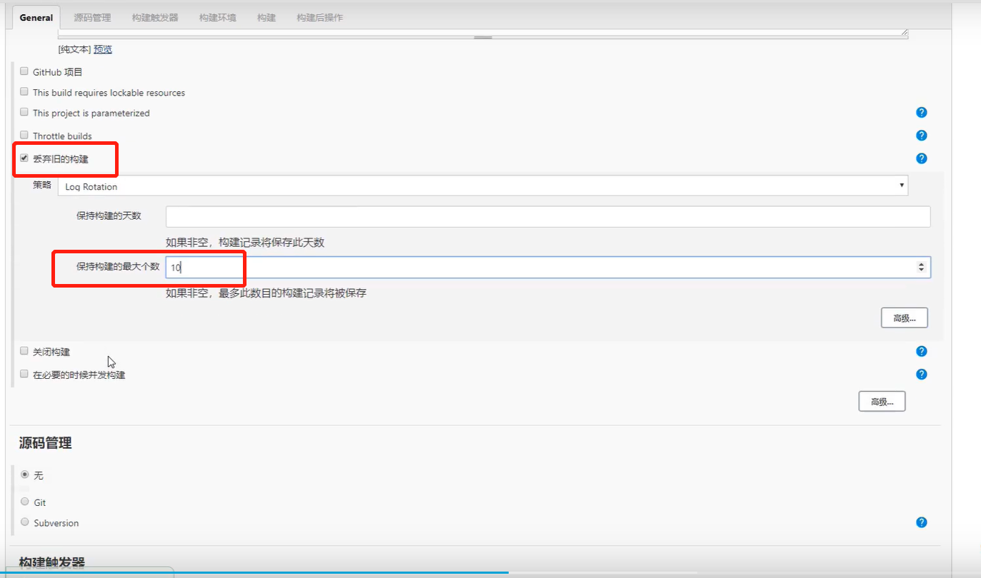 2.3 丢弃旧的构建 设置保持构建的最大数
