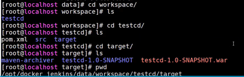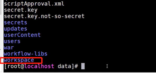/var/jenkins_home 跟宿主机映射好了 我们可以在宿主机的data目录下看到workspace文件夹