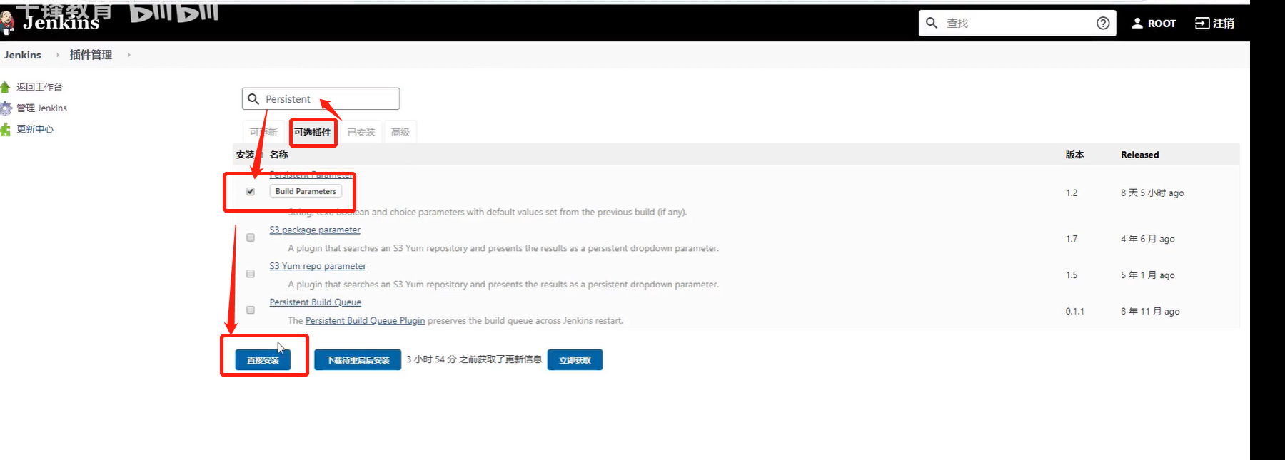 7.6.1. 安装Git parameter的插件(安装jenkins的时候已经指定好了,因为和版本有关这里再下载一下presistent parameter的插件 )