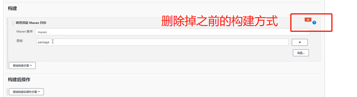 修改构建方式 先删除之前构建方式 再指定shell构建方式