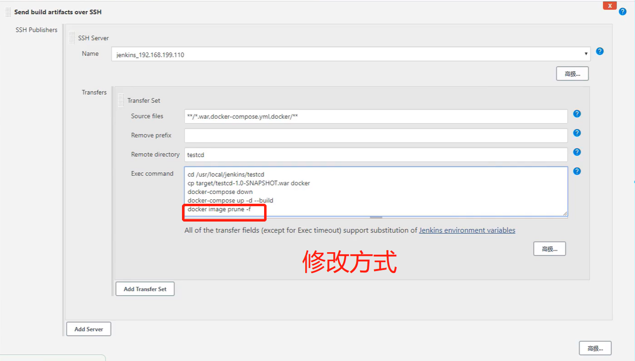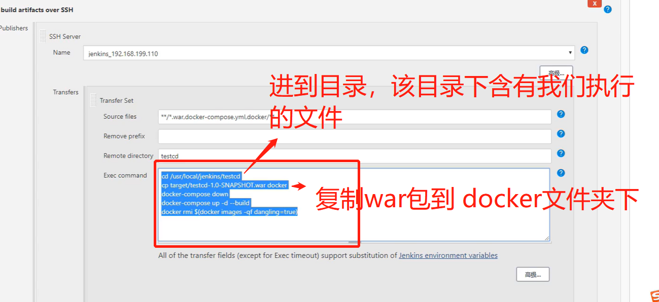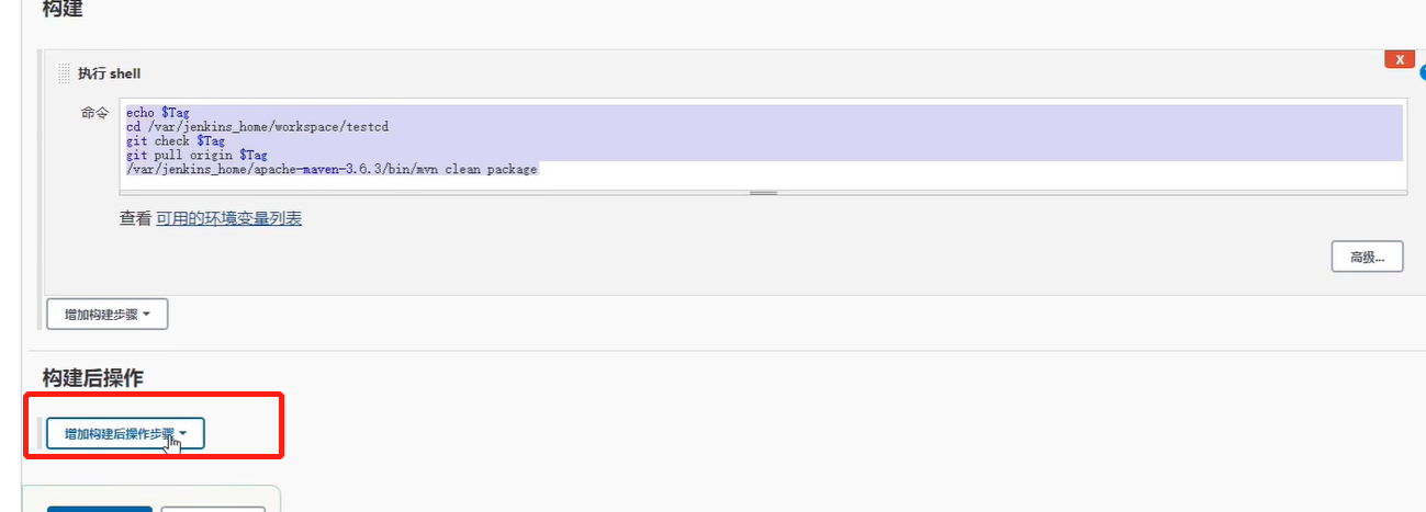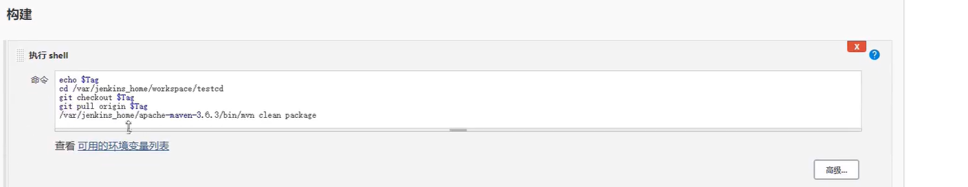 解释: 1.打印一下刚才Git参数名称 2. 进到jenkins容器存放项目的目录下(该项目下youwar包) 3 git切换到指定的分支 4 重新的pull orign 5 maven(因为maven命令没有 需要到安装maven的路径下执行) 清除一下package |