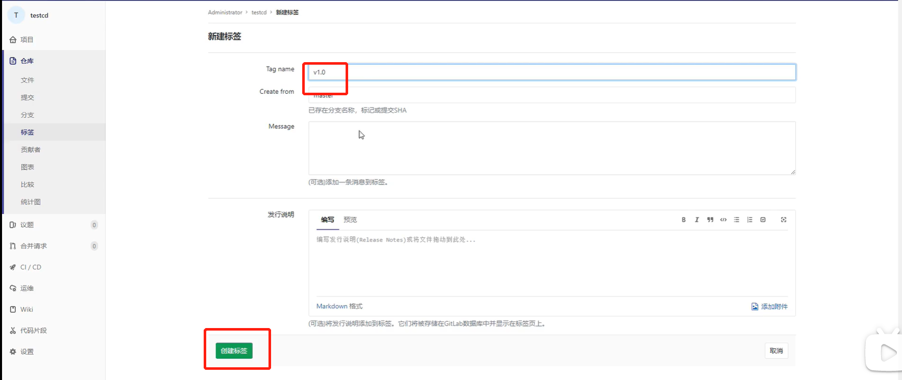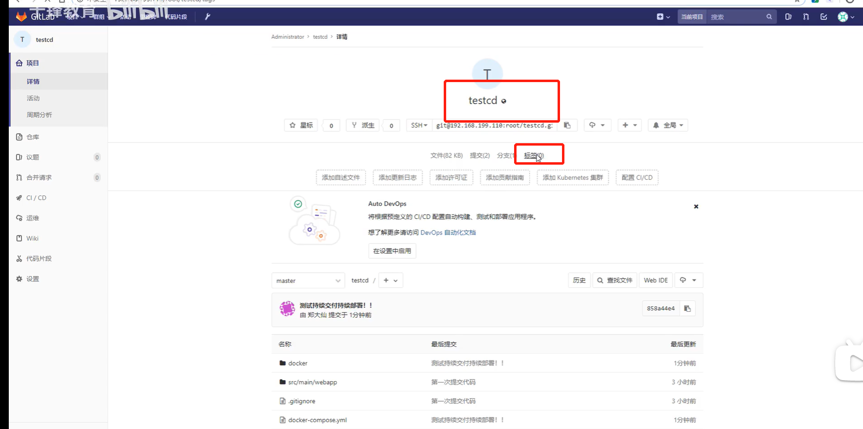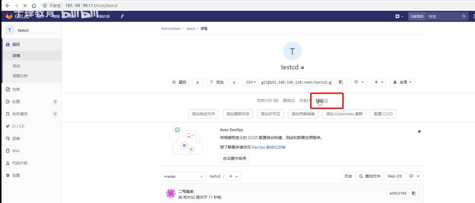 我们推送到Gitlib后并不会在tomcat中立即部署,CD的我们配置中指定过需要基于标签执行。因此我们需要指定版本号标签。