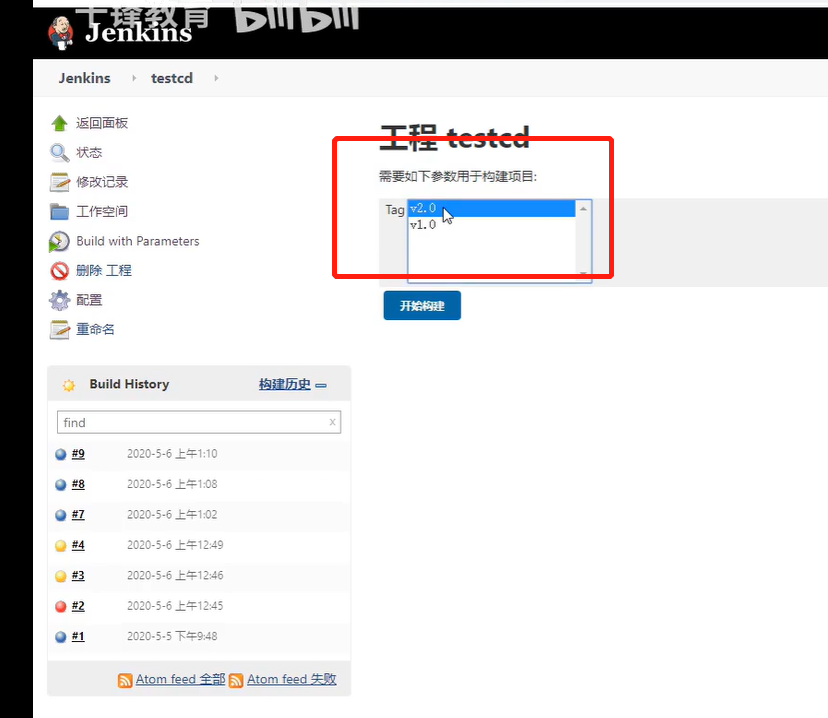 返回到jenkins中看到部署的时候多了一个可选项 v2.0