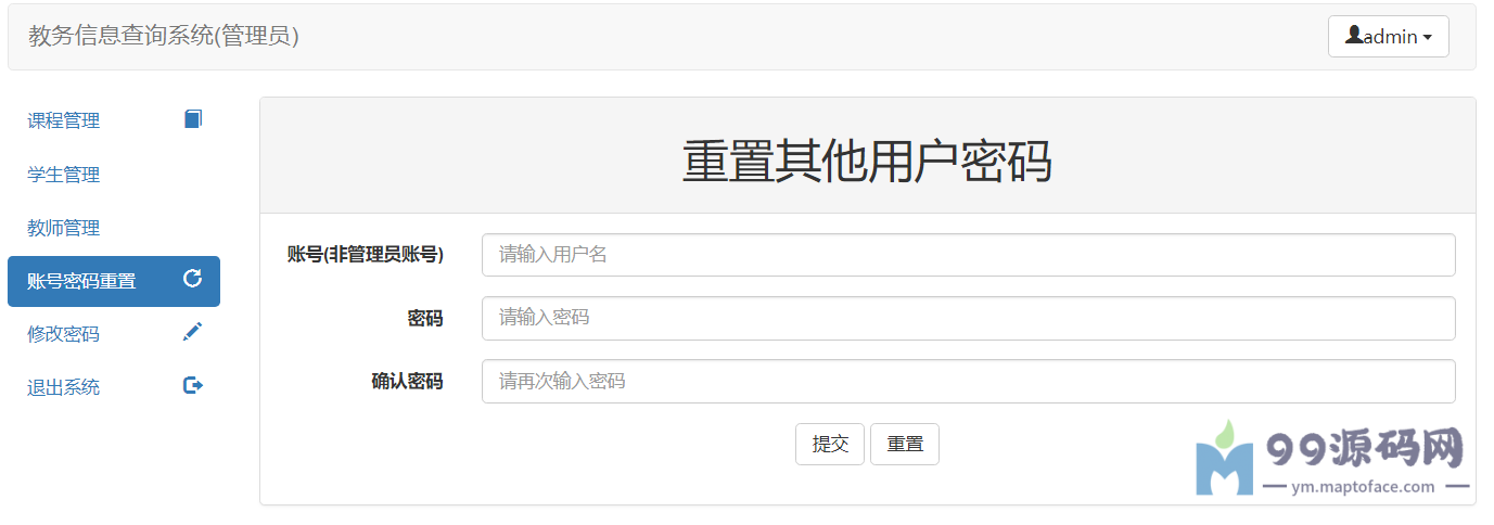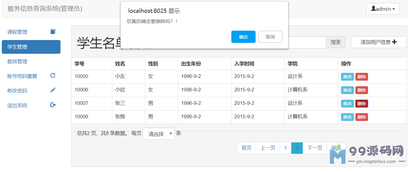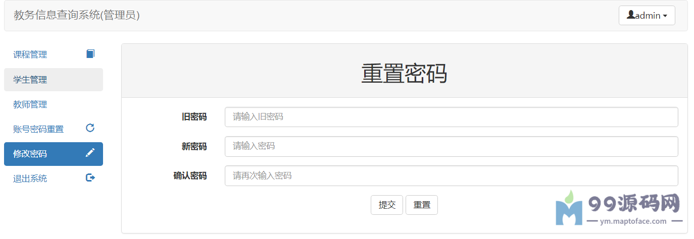 管理员:对课程、学生信息、教师信息等进行增删改查,修改个人密码,修改学生和教师的密码