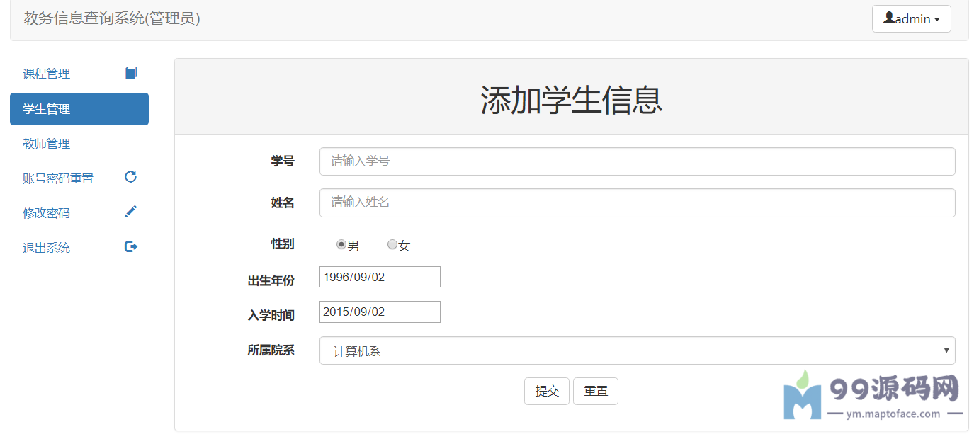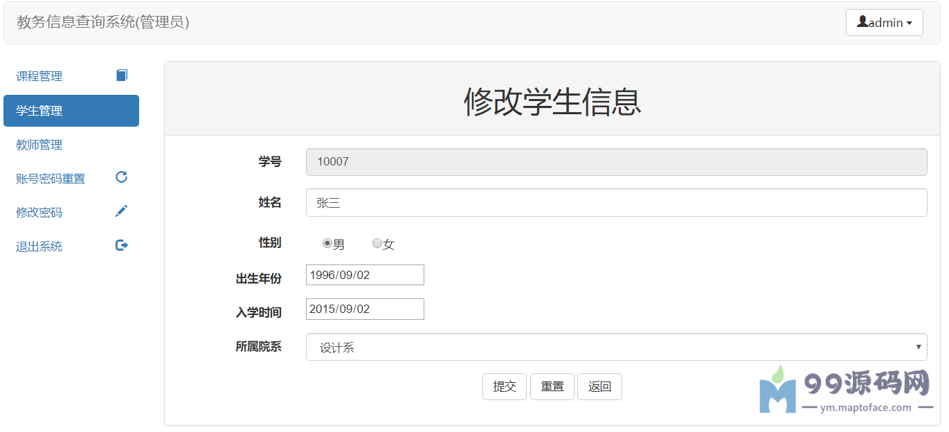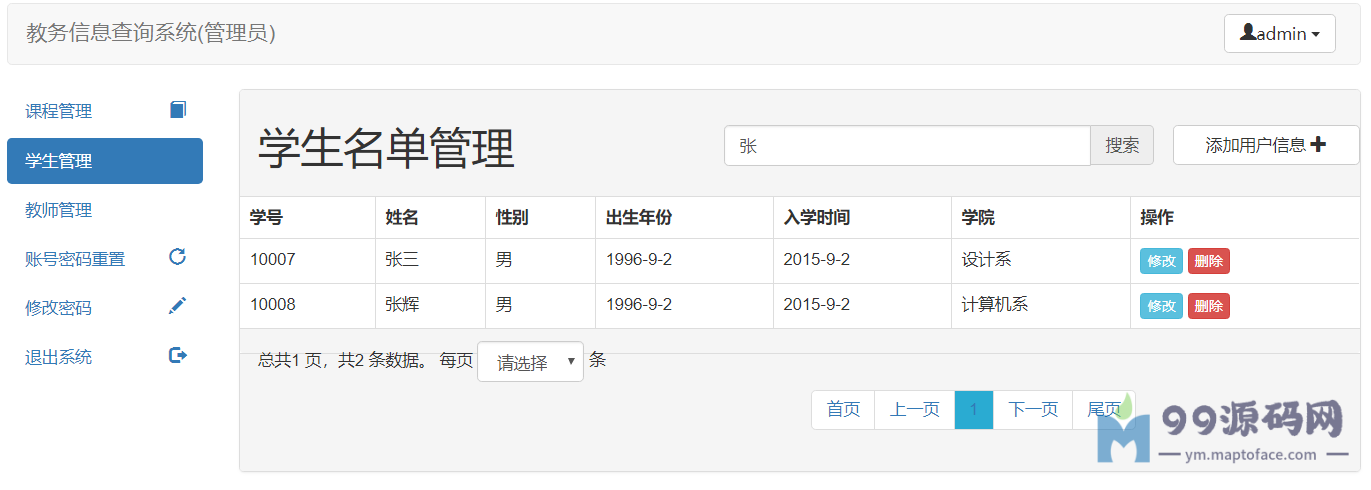 这个项目是一个简单的教务查询系统,其中有三种角色:管理员,教师,学生。三种角色都有相应的权限,其中: