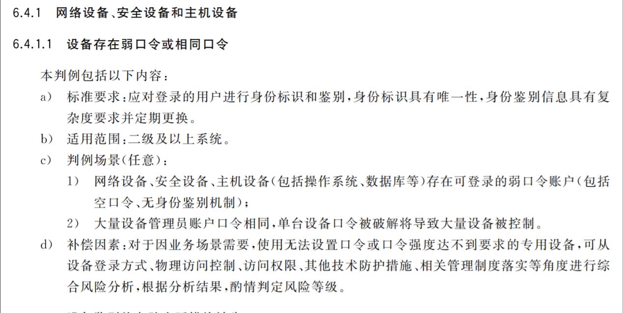 而在我们等级保护测评中,依据团标T-ISEAA001-2021《网络安全等级保护测评高风险判定指引》中也是明确指出了弱密码是风险等级为高的安全隐患。