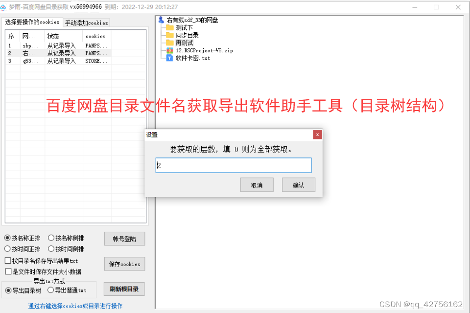 1、可以导出选中目录下指定层数的文件夹和文件列表。