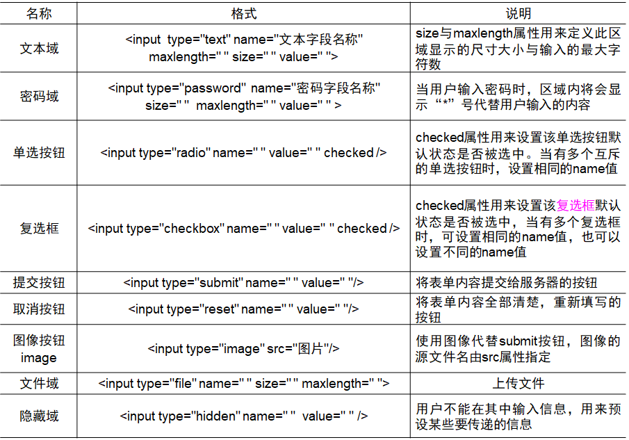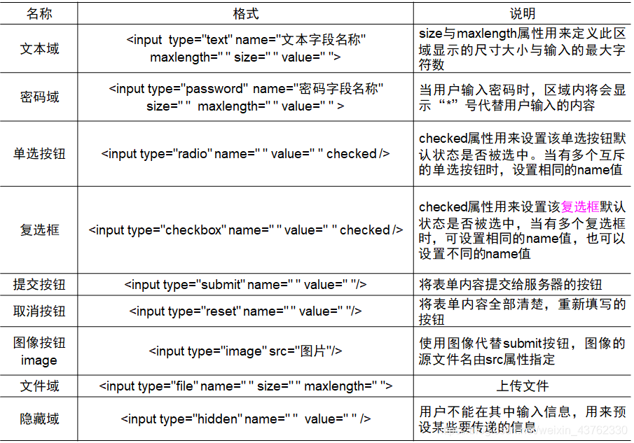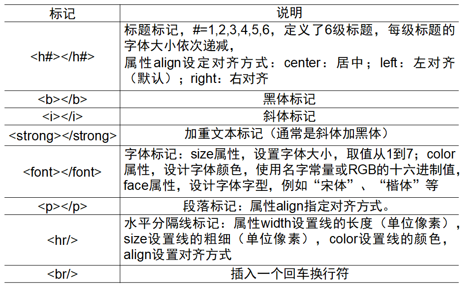 在网页上要展示的不同元素,需要采用不同的标签给出定义和说明。主要有: