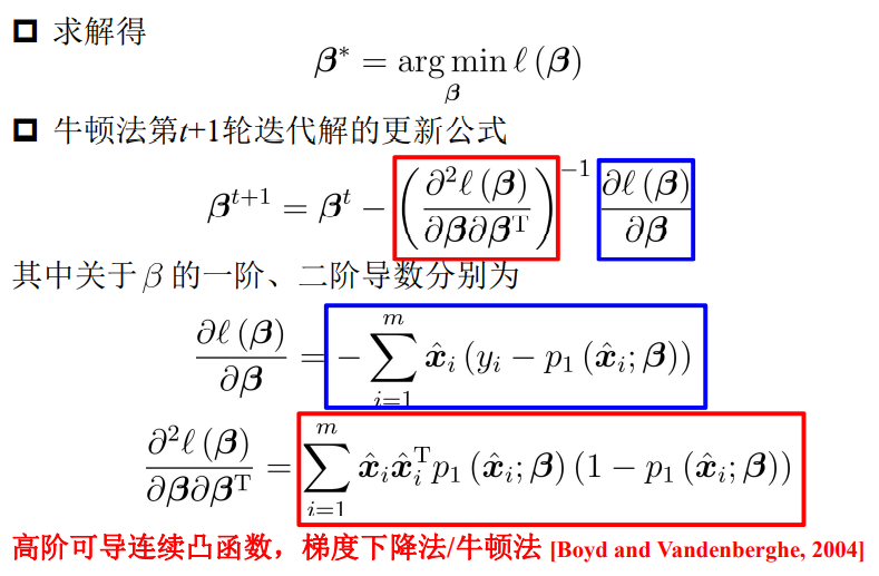 但是使用这个方法我们求解出的w和b仍然无法得到我们想要的最小概率。在这里我们可以使用梯度下降法/牛顿法来进一步求解,得到我们所需的最小值,然后实现分类。