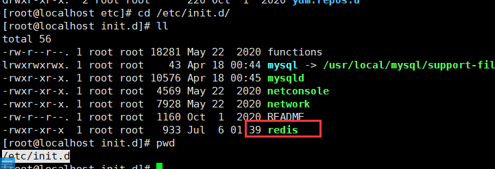 在**/etc/init.d**目录下新建一个redis文件(直接** vim redis**),如下图