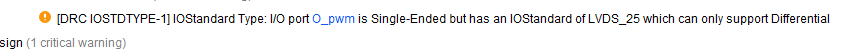 当输出为差分信号时配置的电平标准为LVDS_25,如果输出为单端信号时,电平标准仍然设置成LVDS,实现时会报下面错误: