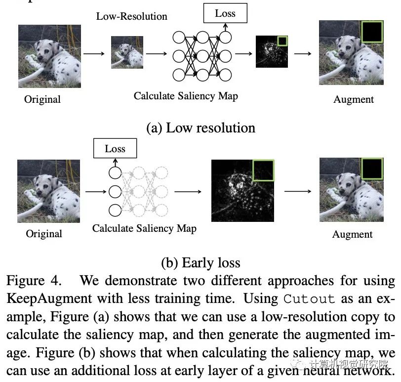 为了缓解上述问题,有研究者提出了一种简单而高效的方法,称为保持增强(KeepAugment),以提高增强图像的保真度。其主要思想是首先使用显著性map来检测原始图像上的重要区域,然后在增强过程中保留这些信息区域。这种信息保护策略使我们能够生成更忠实的训练示例。