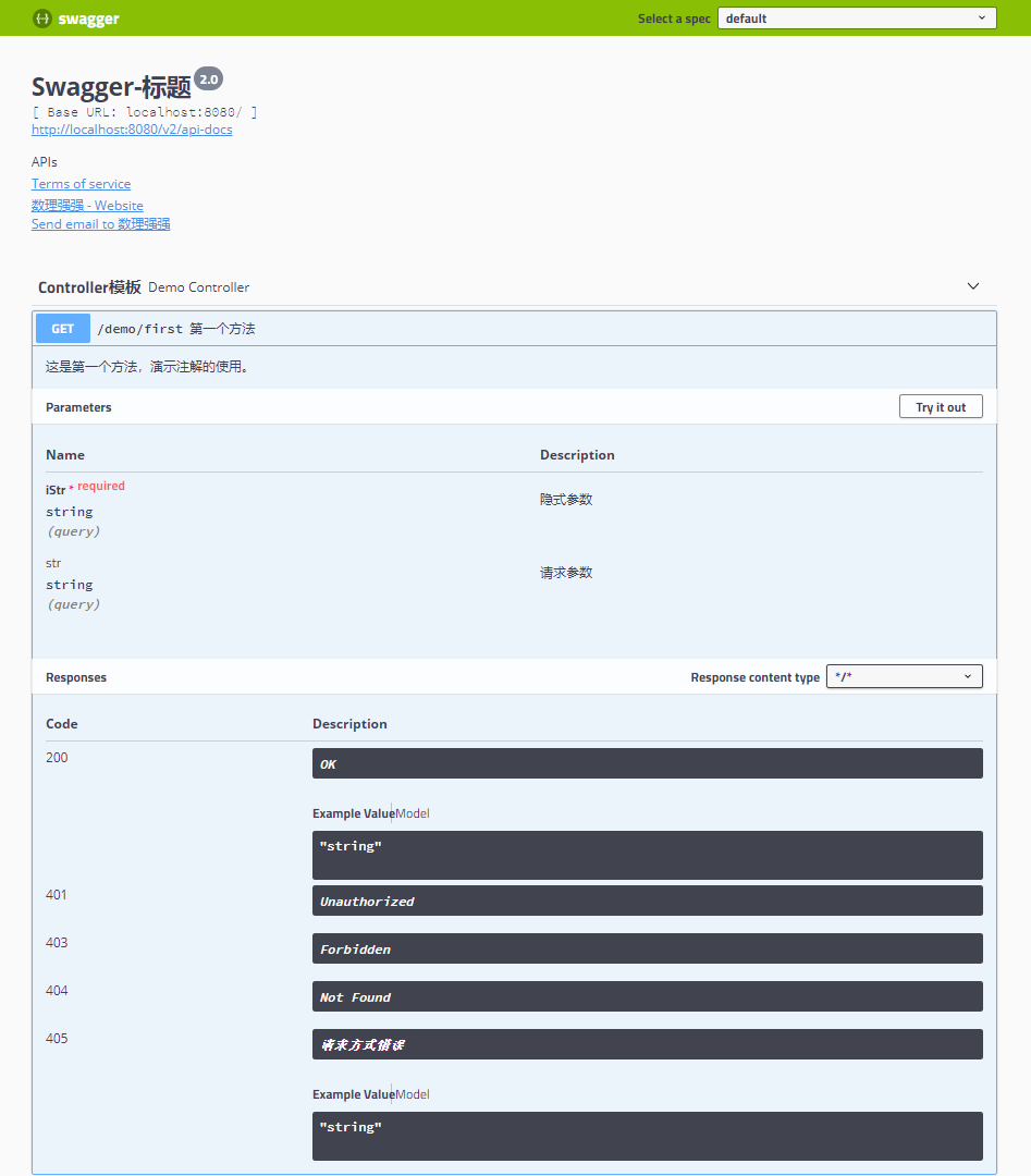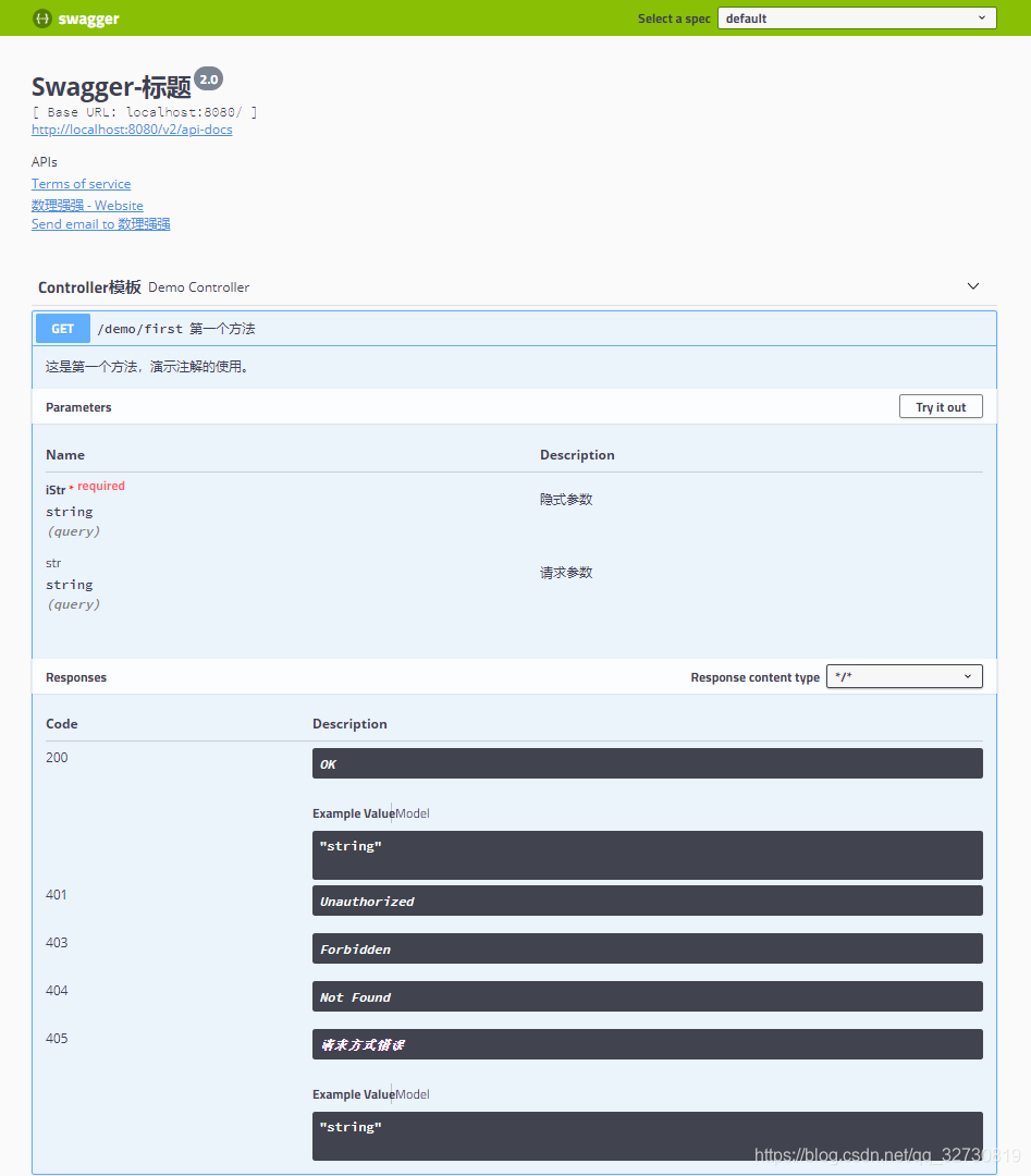 * 访问URL:http://localhost:8080/swagger-ui.html#