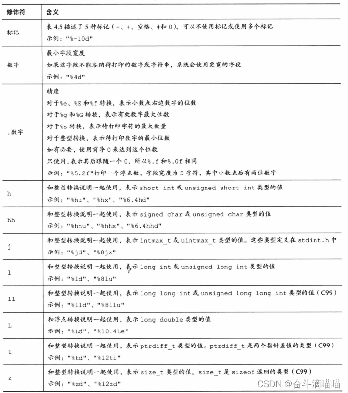 这时候我们就需要用到printf()函数的转换说明修饰符,进一步对转换说明进行处理;