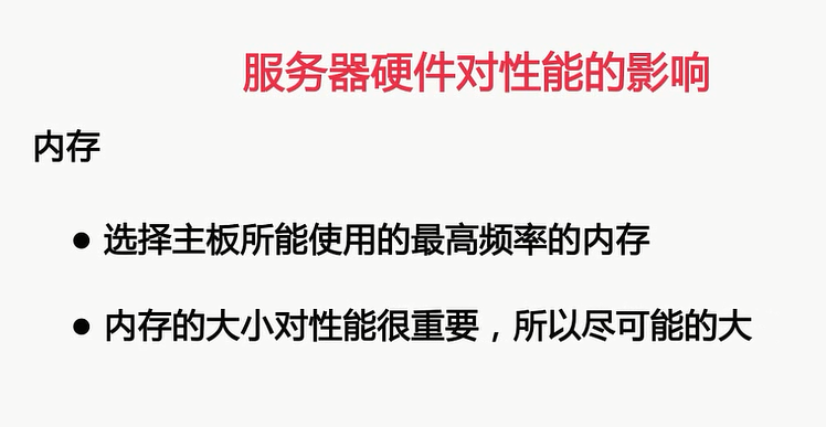 内存的频率越高,性能也就越好,吞吐量相对于而言也就会越大,二呢是内存的大小,性能又很重要的影响,足够的内存