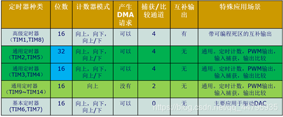 通用定时器:TIM2 TIM3 TIM4 TIM5 TIM9 TIM10 TIM11 TIM12 TIM13 TIM14